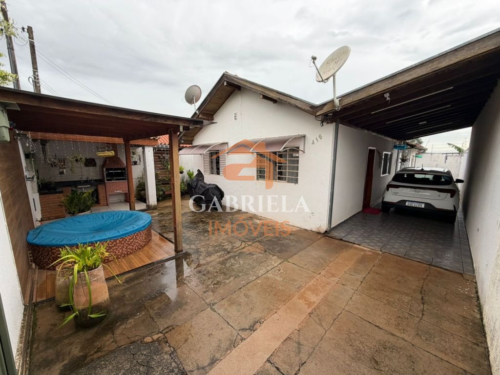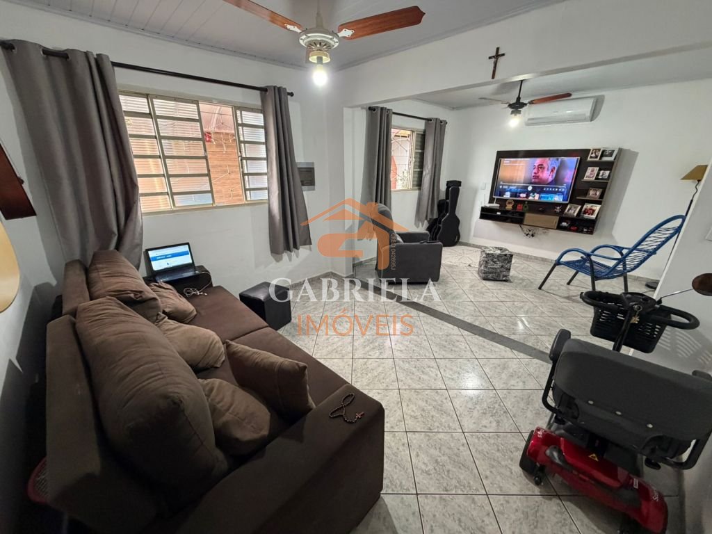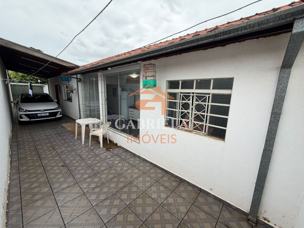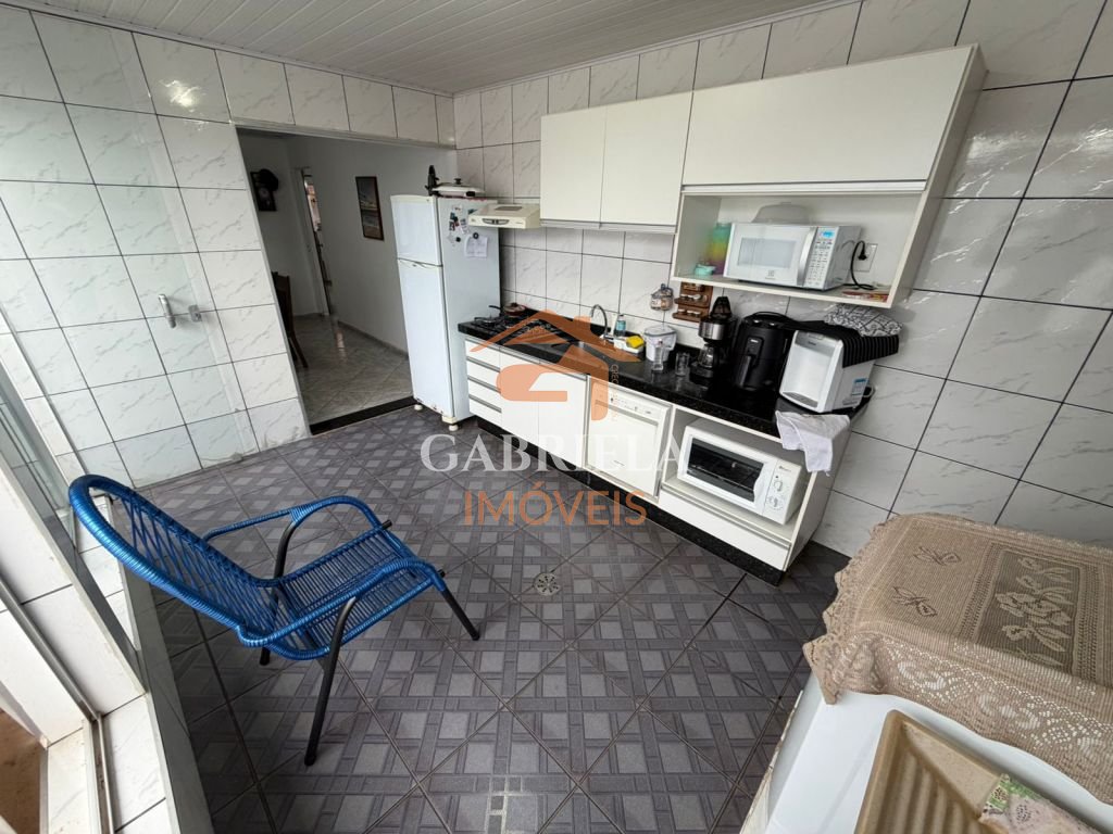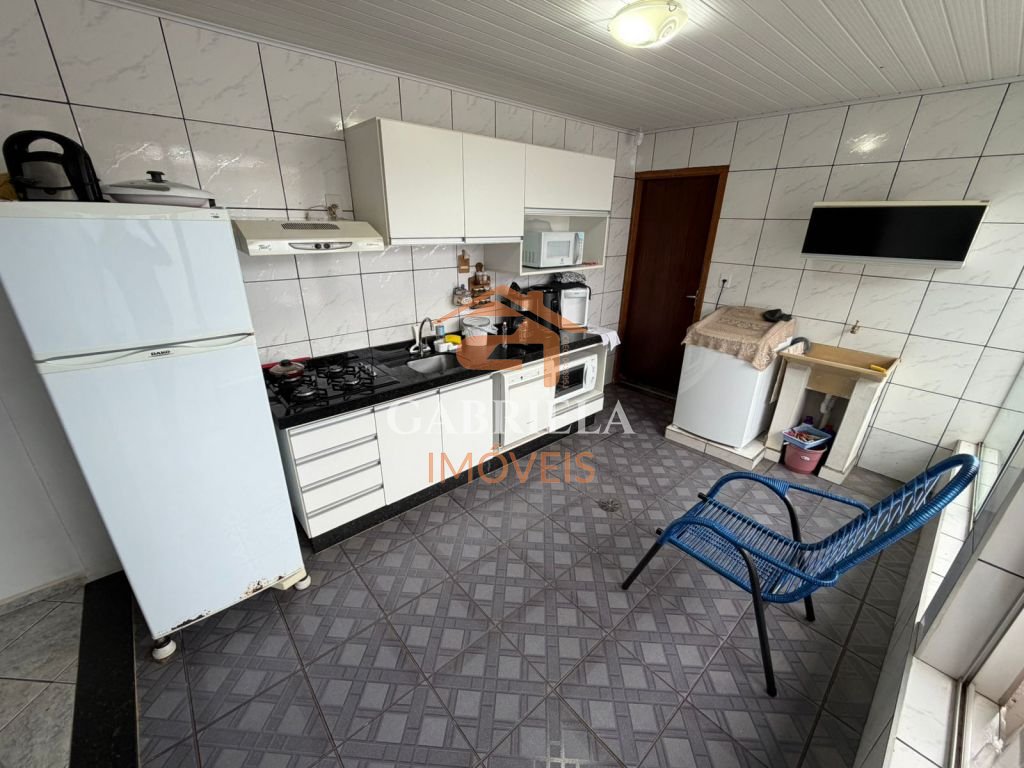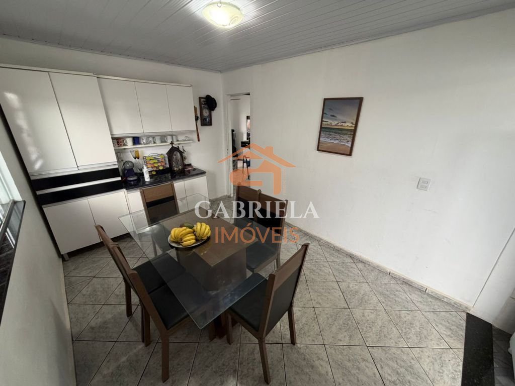 Casa possui sala e cozina ampla.